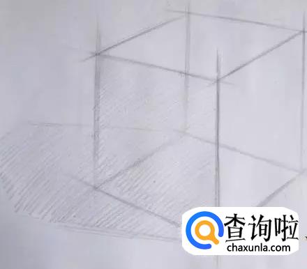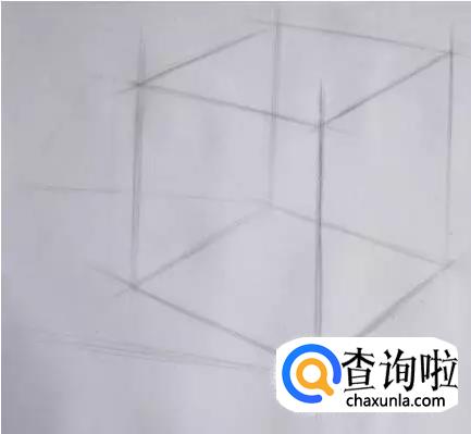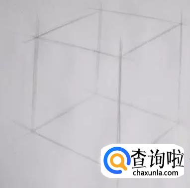 第五步:画出上面两根透视线,注意透视状态。然后画出正方体结构线。