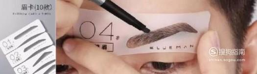 确定眉形。这里也可以用女生用的五点法眉头上下两点,眉峰上下两点,眉梢一点。