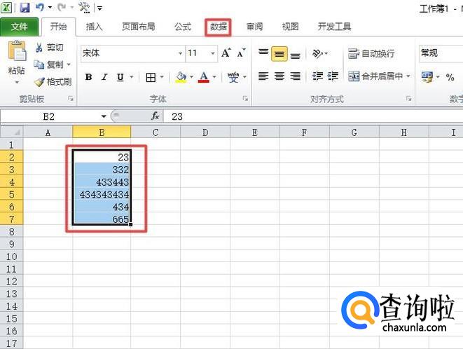 之后我们选中这些数字的单元格,之后我们点击工具栏中的数据;