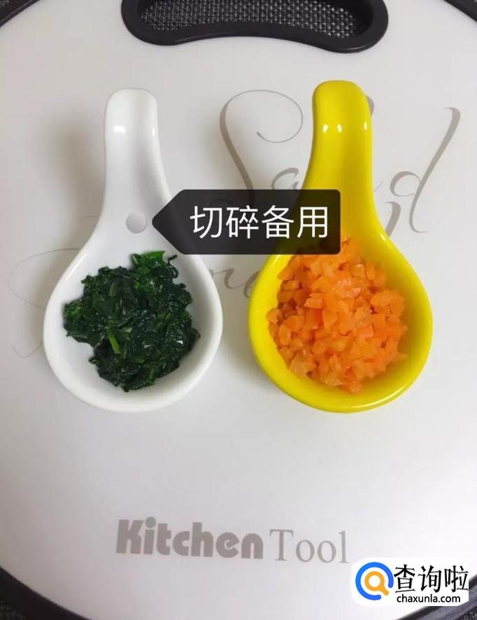 然后将胡萝卜和菠菜切碎,如下图所示。