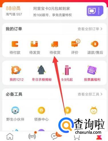 进入之后,点击“待收货”,进入下一页面,如图所示。
