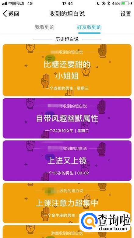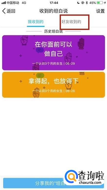 然后点击收到的坦白说,如下图所示。