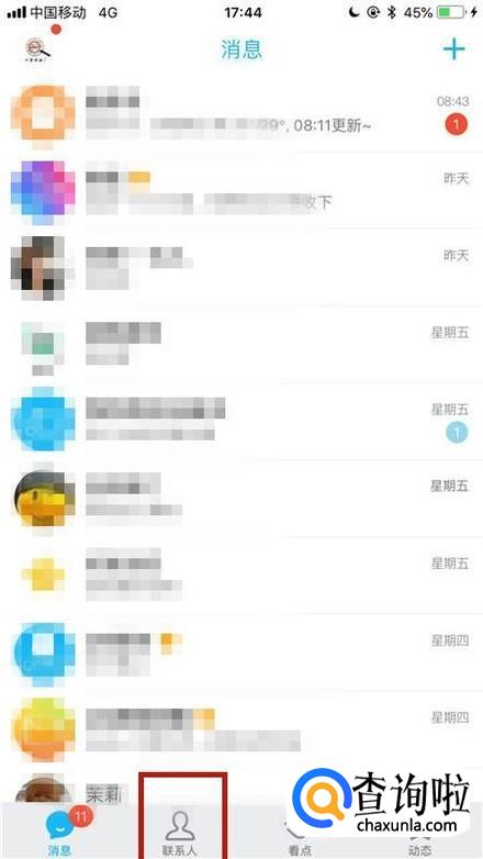 然后点击屏幕下方的联系人,如下图所示。