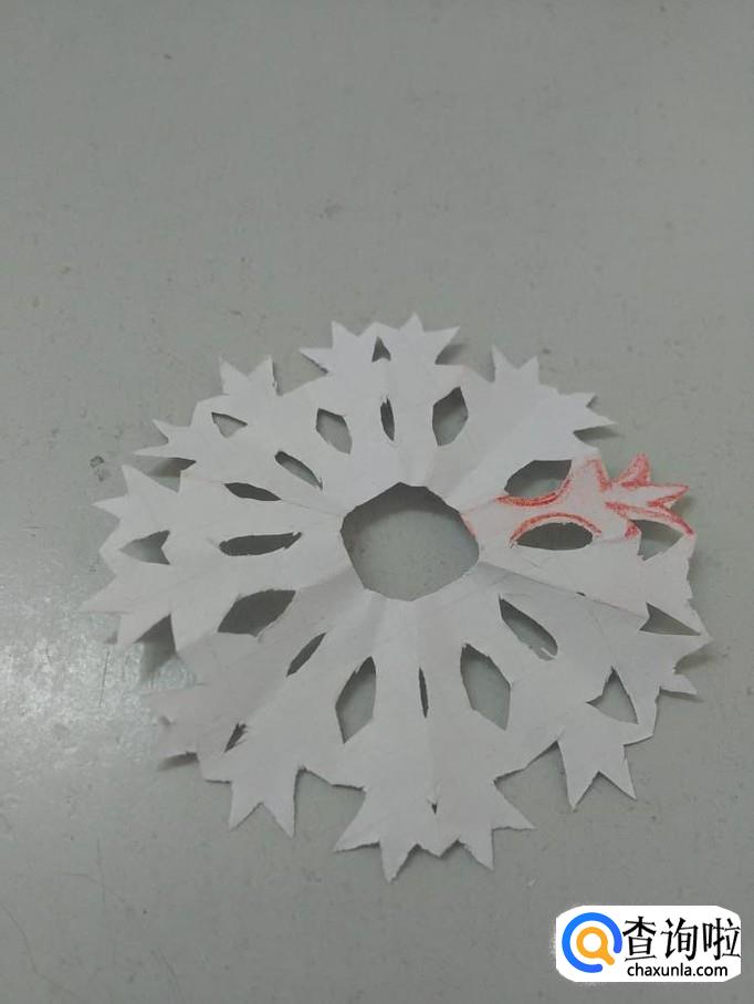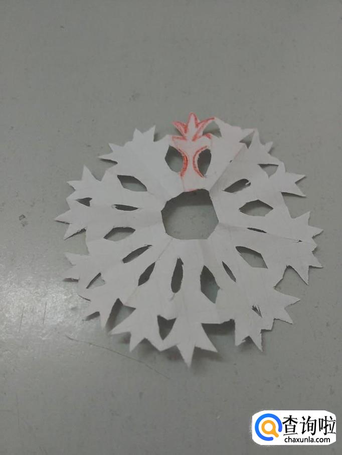 把纸打开,就是一朵八瓣团花。