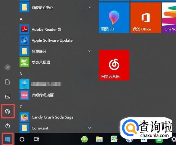 首先,我们点击开始按钮,弹出的界面,我们点击设置,如图所示;