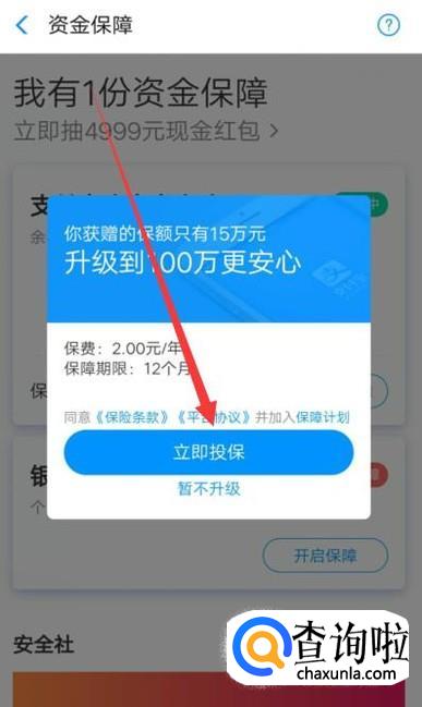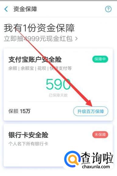 领取成功之后,点击“升级百万保障”,点击并进入,如图所示。