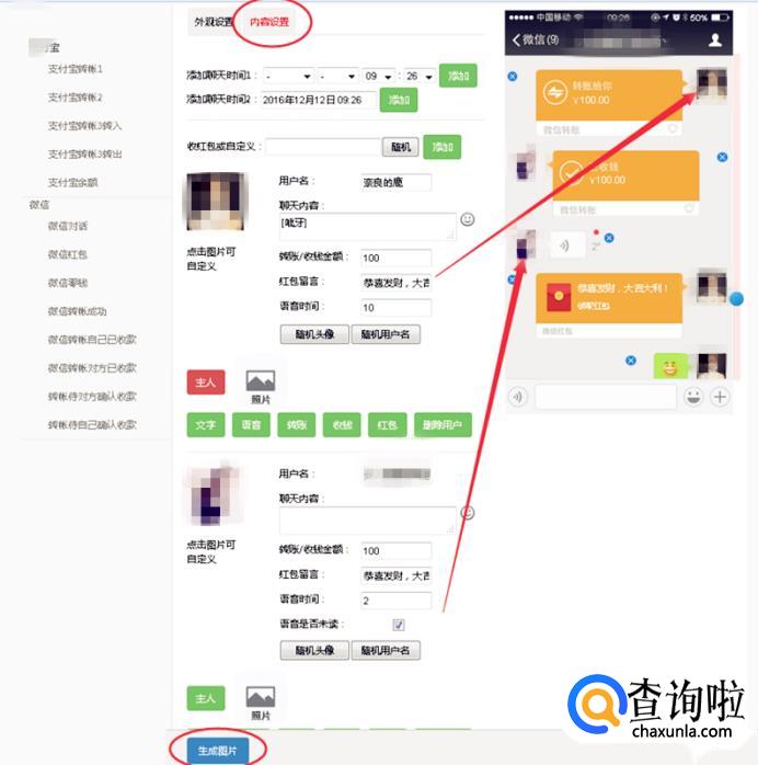 再后面就是对聊天的内容进行一些设置,等等设置好了之后就点击生成图片。