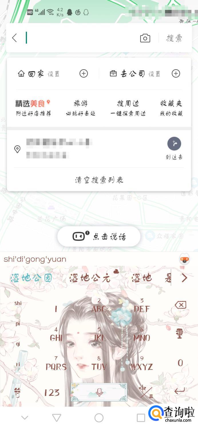 打开手机地图,在搜索框搜索一个想去的地点。如图。