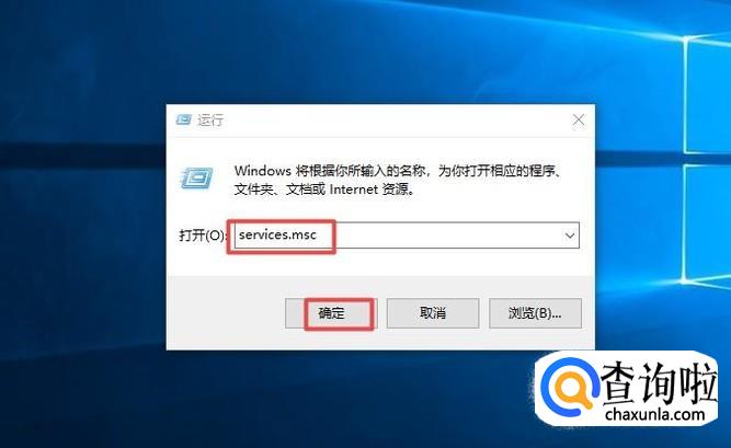 弹出的界面,我们输入services.msc,然后我们点击确定;