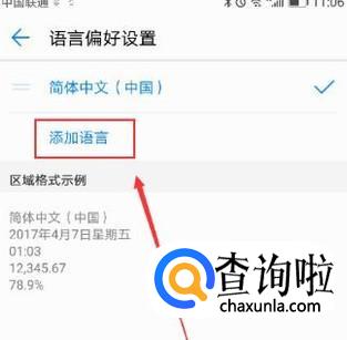 进入语言栏,点击“添加语言”,进入下一界面,如图所示。