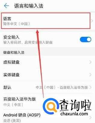 在语言和输入法界面中,点击“语言”,进入下一界面,如图所示。