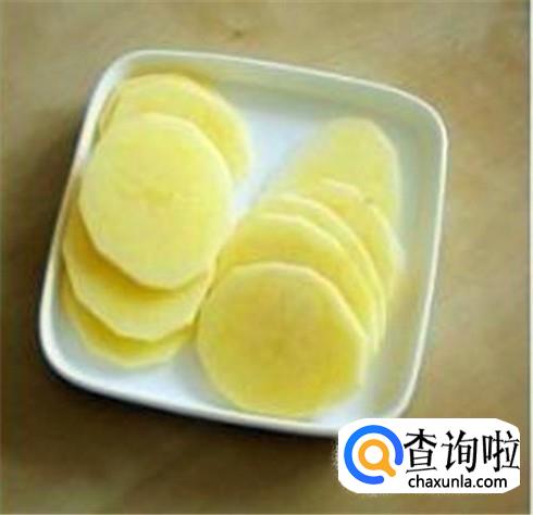 土豆片包起来放进冰箱里冷冻,注意不要让土豆片冻成一团,那样子没办法炸薯片的,土豆片冻的硬邦邦的就行了。
