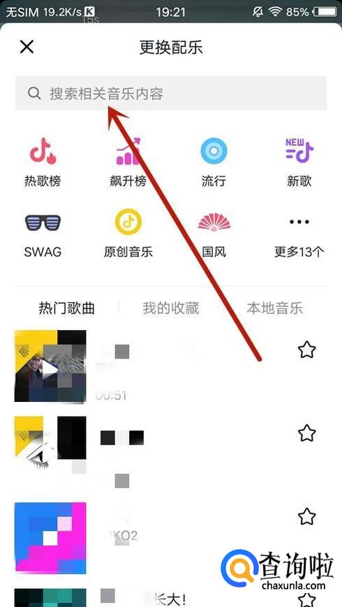 进入之后,点击“搜索栏”,搜索想要上传的歌曲,如图所示。