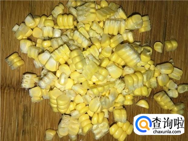 玉米清洗干净,切成玉米粒。也可以用手剥成玉米粒。