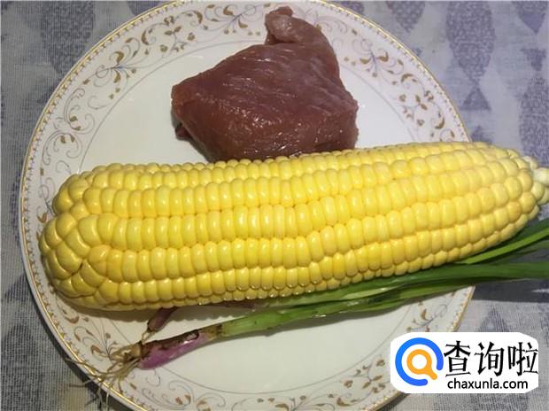 准备好所有食材:甜玉米一根、瘦肉适量、葱一根。