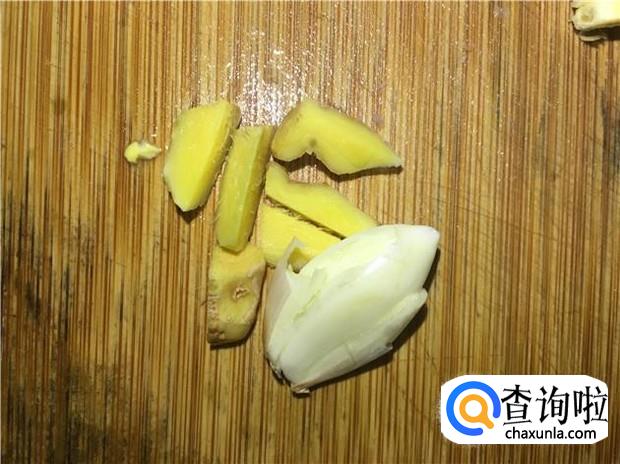 姜清洗干净,切片;蒜头切片;葱清洗干净,切成葱花,备用。