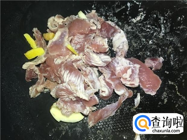 热锅下油,放入姜蒜煸香,然后倒入瘦肉,翻炒均匀。