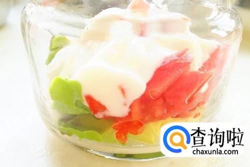 这款牛油果的吃法,光看名字就知道一定口感不差,先将一整个番茄放入水中烫一下去皮切成小长块,因为番茄皮上面可能残留很多农药,保险起见,还是去皮,更有利于宝宝吸收。牛油果切开掰成两半并去掉内核,果肉挖出捣烂,将牛油果泥,番茄块分别摆在盘子中,上面再淋上白色的沙拉酱,一款牛油果番茄沙拉酱就做好了,酸酸甜甜的,相信宝宝一定会喜欢吃的。