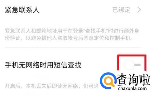 开启“手机无网络时短信查找”