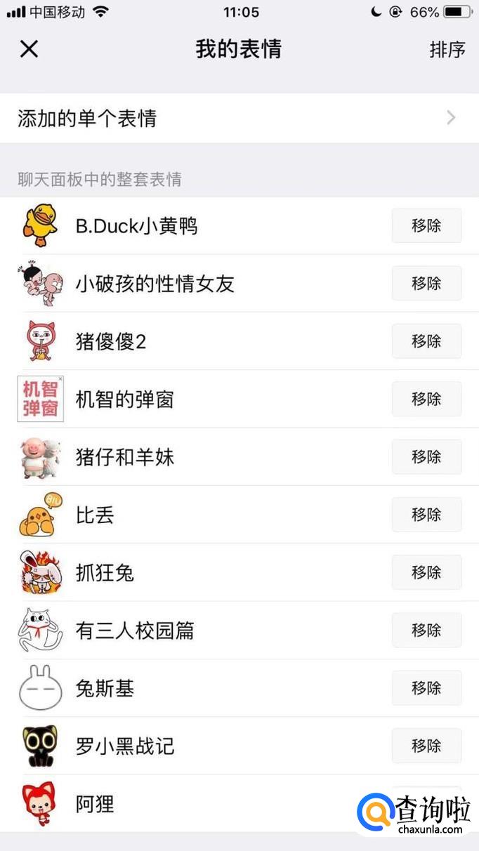 最后点击我们不想用的表情包右侧的移除就可以了,你学会了吗?赶快动手试一试吧。