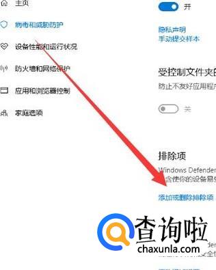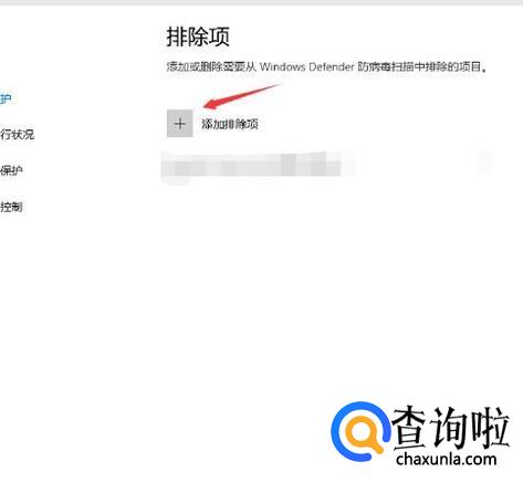 进入之后,点击图示位置的“添加排除项”,选择相应程序即可将其添加。