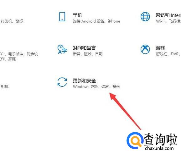 进入之后,点击“更新和安全”,进入下一页面,如图所示。