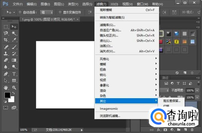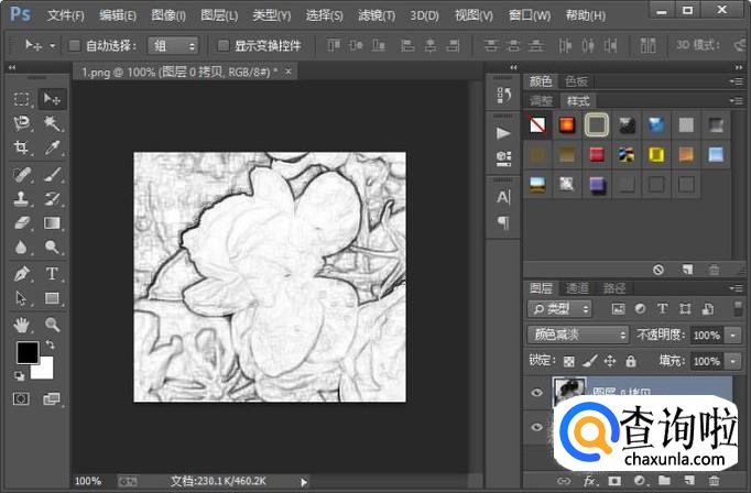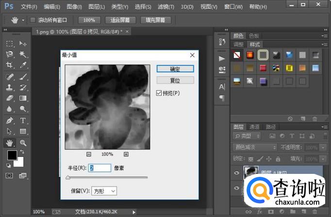 接着我们把复制的图片图层的图层混合模式改为颜色减淡。然后执行滤镜-其他-最小值命令,半径设置为2就可以了。