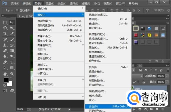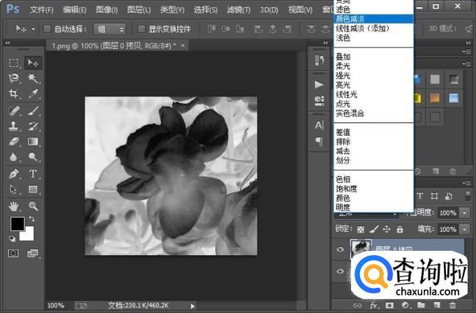 接下来我们对图片进行去色处理。然后复制图片图层,对复制的图片图层进行反相处理。