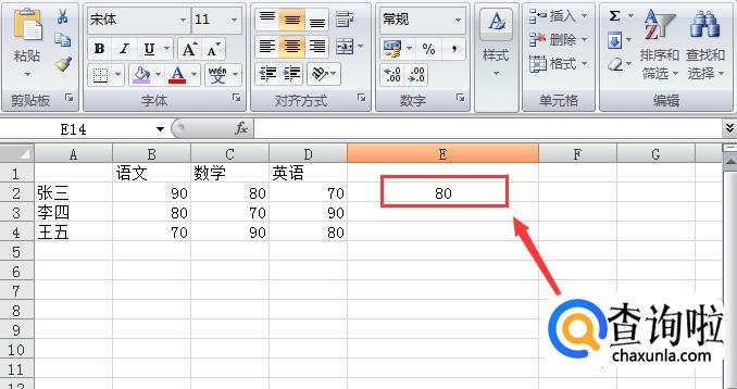 之后点击确定就可以了,张三的数学成绩80就出来了。