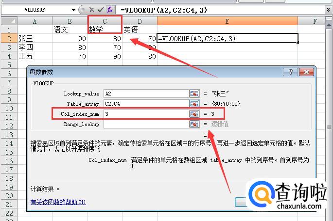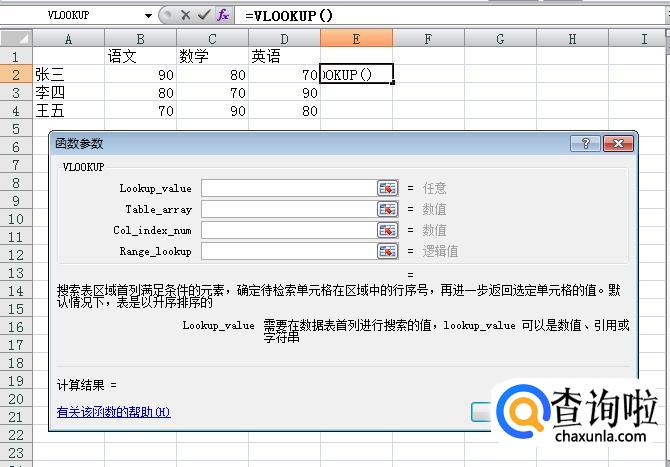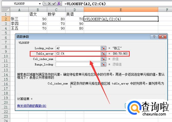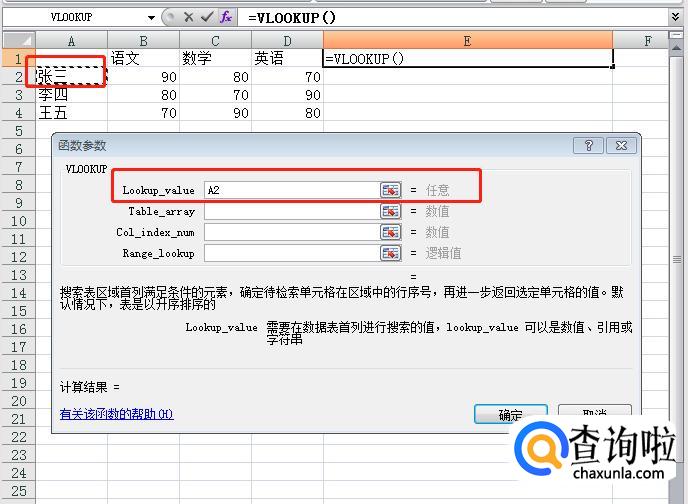 lookup-value任意值:点击我们要找的那个目标,我们要知道张三的成绩,就点击张三。
