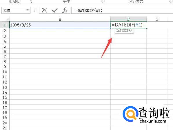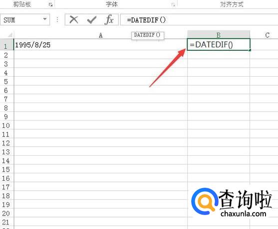 打开excel之后,我们在单元格内输入出生年月日,然后再选择单元格并输入函数如图所示: