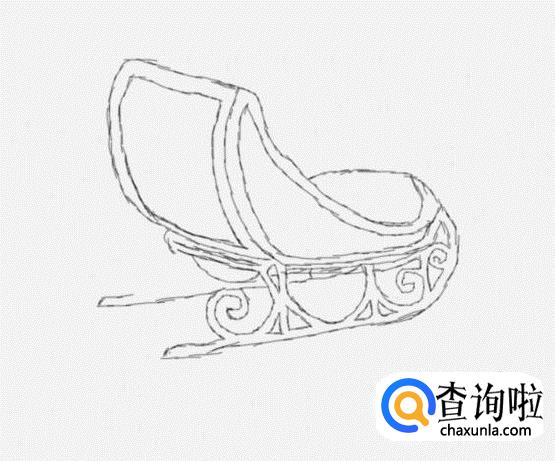 在后靠背的基础上再画出雪橇车上的扶手和车座,如图所示: