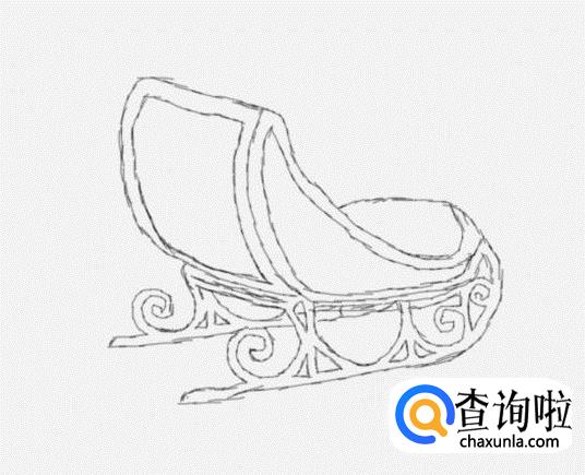 首先画出圣诞老人雪橇车的后靠背,如图所示: