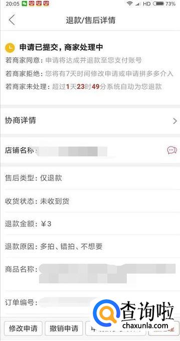 申请提交后,卖家审核完毕就会自动退款,遇到退款纠纷还可以申请拼多多客服介入。