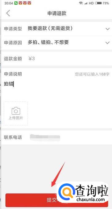 然后我们就可以输入退款理由和选项,输入后直接点击下方的提交申请即可。