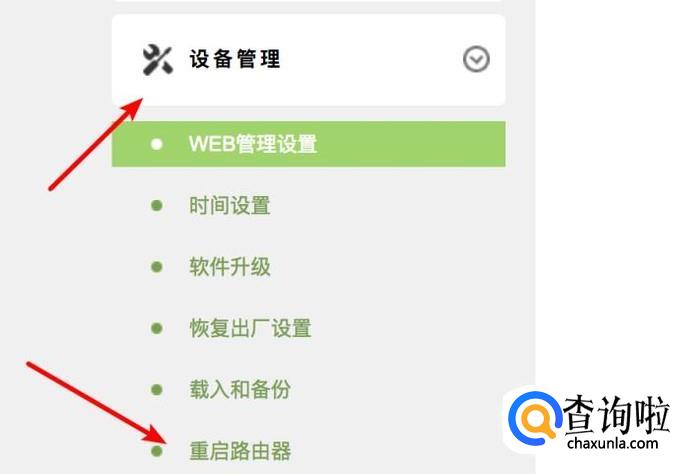 在左边的设备管理下,我们看到有‘重启路由器’。