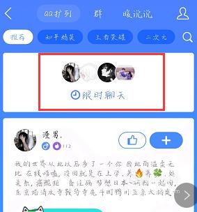 在QQ扩列界面最上面还有一个“限时聊天”,你可以点击它,如下图。