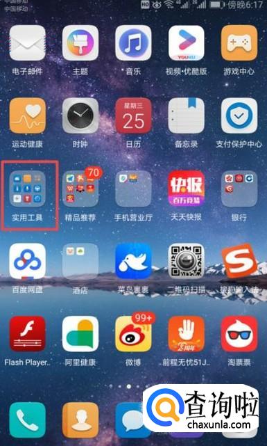 首先,我们打开我们的手机,然后点击手机桌面上的实用工具;
