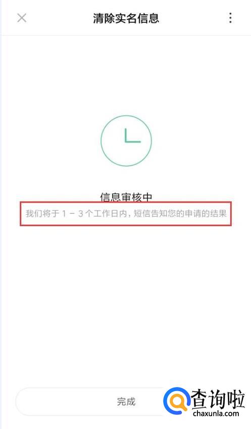 等待系统审核,审核成功后,实名信息就会被清除。