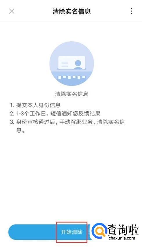 在清除实名信息界面,点击底部的开始清除按钮。