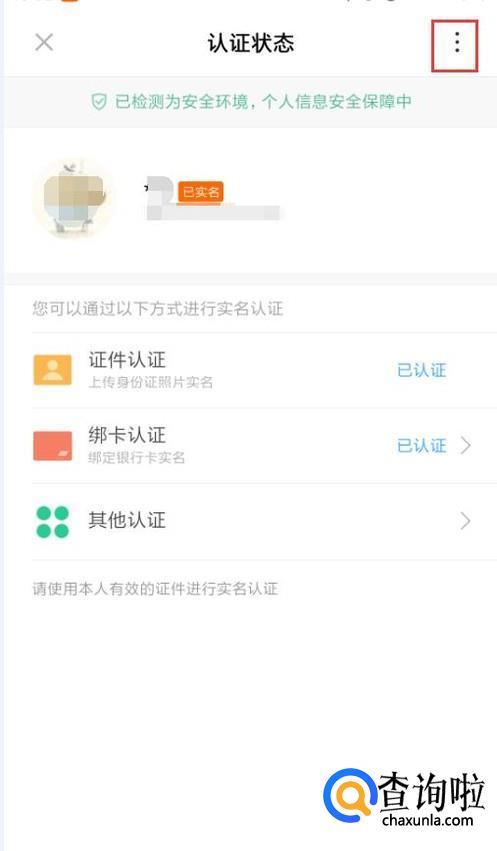 在认证状态界面中,点击右上角的三个点按钮。