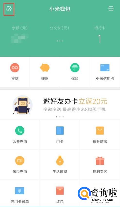 点击小米钱包界面左上角的齿轮按钮,进入设置。