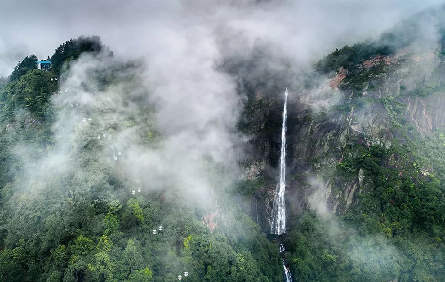 ①香炉峰:庐山共有四处香炉峰,此当为南部大龙潭旁边的香炉峰。②紫烟:谓紫色的云气、雾气。③挂前川:瀑布飞泻,直落入峰下的大龙潭中,远远望去,好像挂在河面上。川,指大龙潭。④九天:天之最高处。