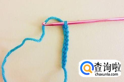 每一行最后一针编织好了之后,还要再多绕一下线,钩针头朝下,穿过针上唯一的圈。以后每行的最后一针,都要多绕一次线,穿一下圈。