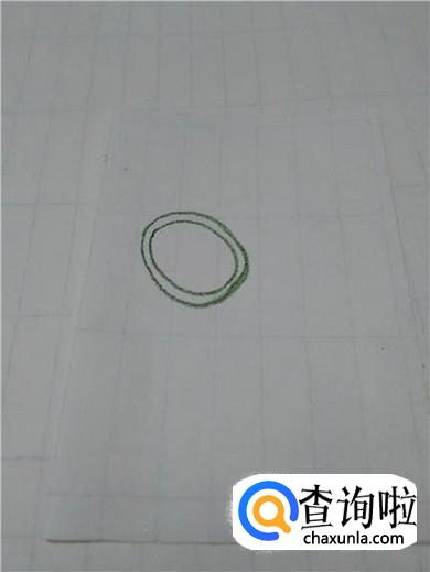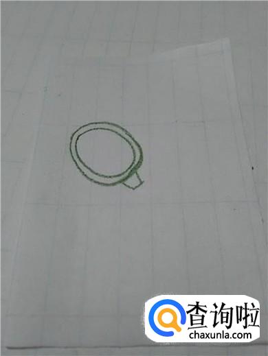 先用彩笔在纸上画了一大一小两个套在一起的椭圆形,表示球拍的框子。