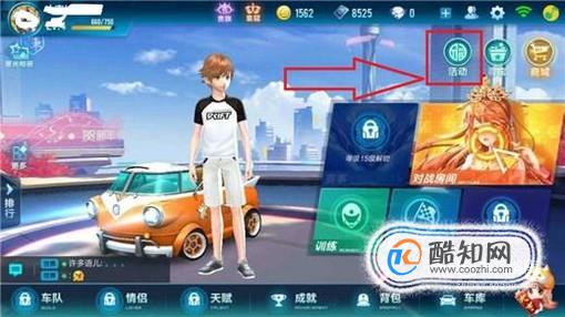 我们这里就讲一种最方便的,就是在QQ飞车手游的首页界面获取,我们点击首页右上角的“活动”专区。