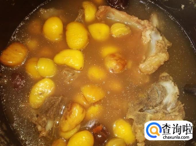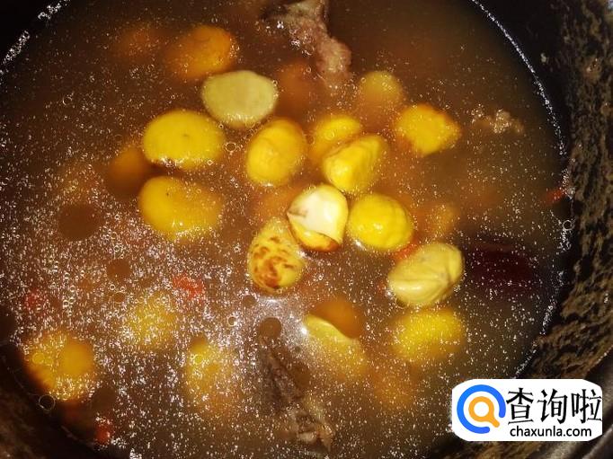 剩下5分钟左右,打开锅盖放板栗进去。【板栗不用放进去太早,因为煲久的板栗会煲烂的】