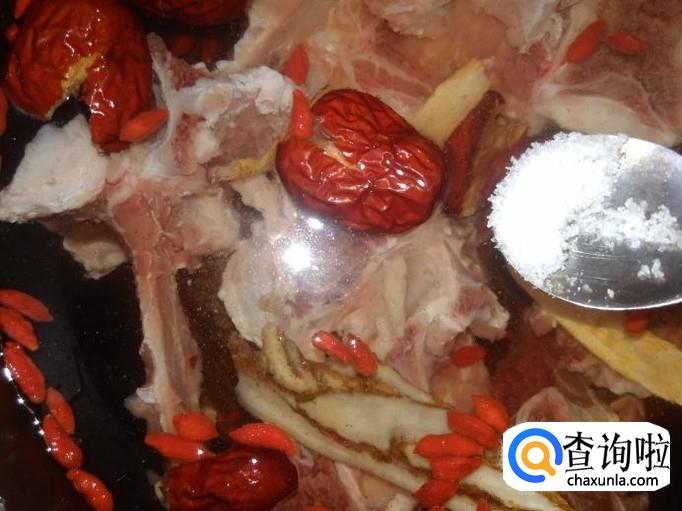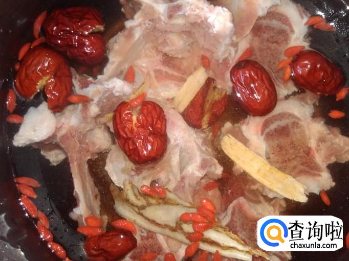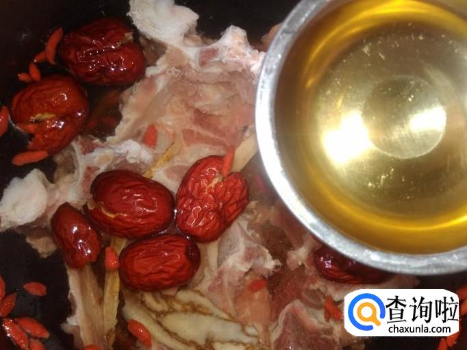 把牛骨和滋补药材放到锅里,加水,水和食材的比例是2-1。