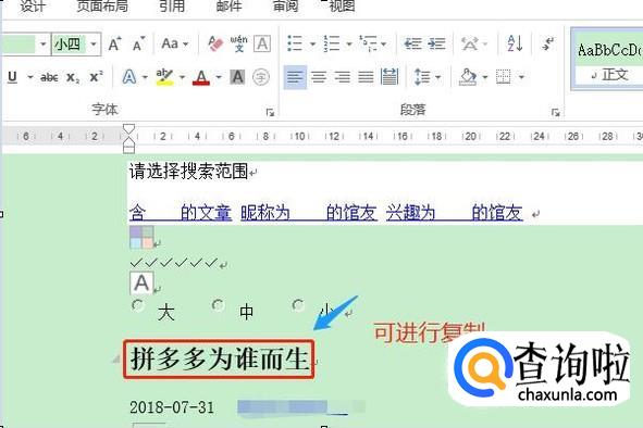 然后就会跳转到Word编辑界面了,然后这时就可以随心所欲的对任何内容进行复制了...
