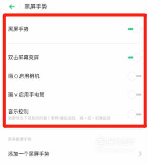 在【手势体感】里,找到并点击进入【黑屏手势】,开启他右侧的开关(喜欢的也可以设置一些自己喜欢的手势操作)